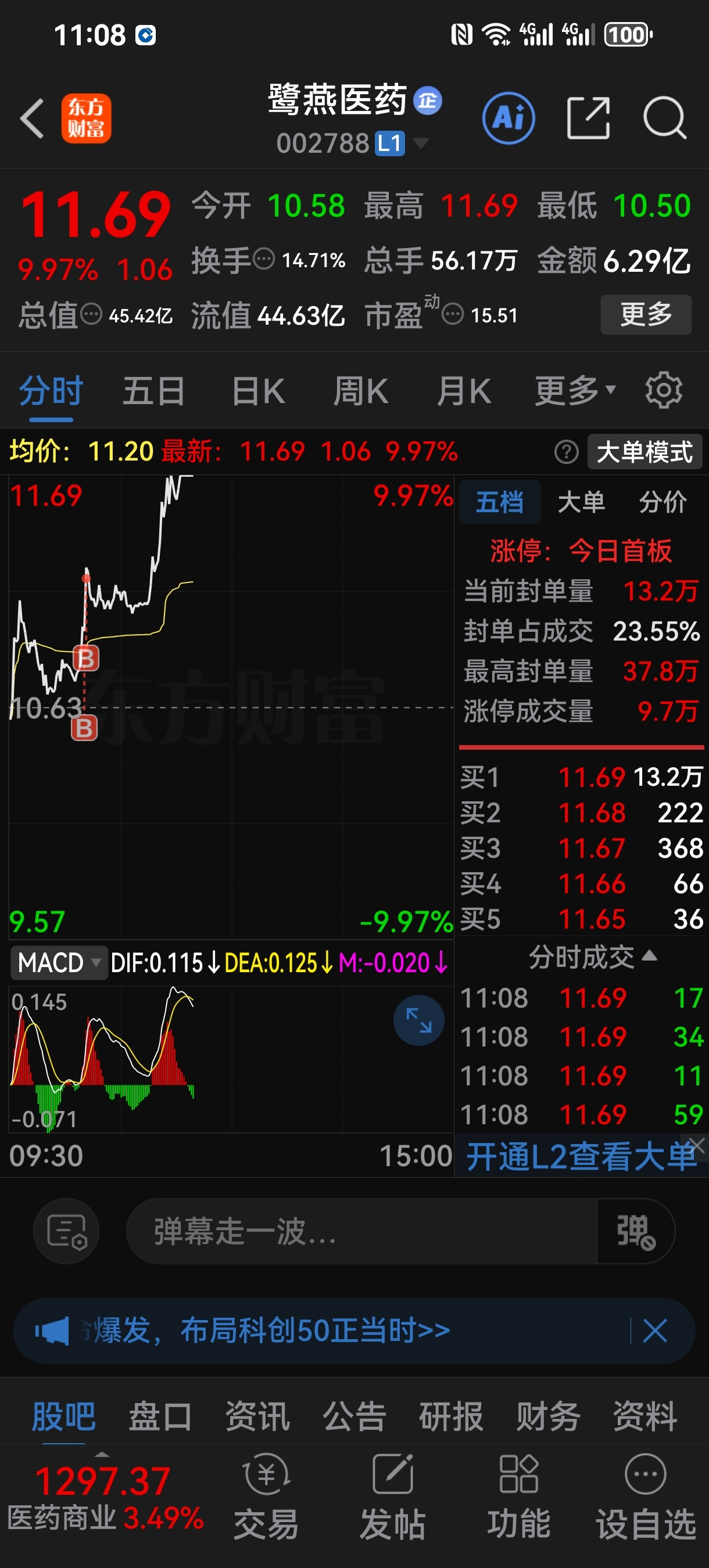 $鹭燕医药(SZ002788)$ 今天加了点,以为加山顶了,不过还好