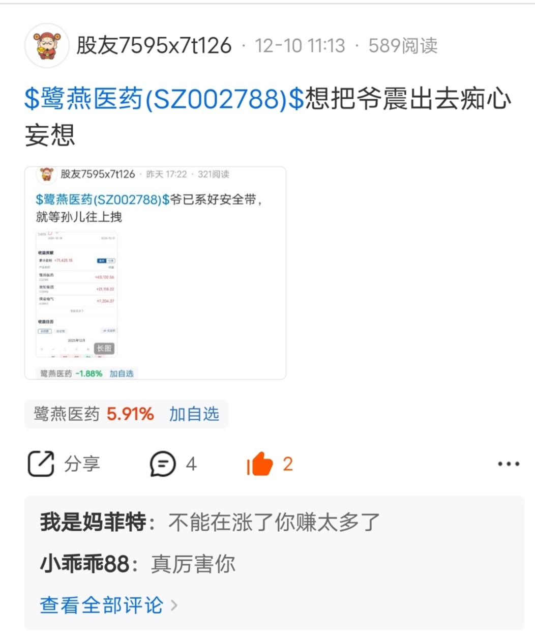 $鹭燕医药(SZ002788)$ 别装了赶紧往上拽,爷等不及了
