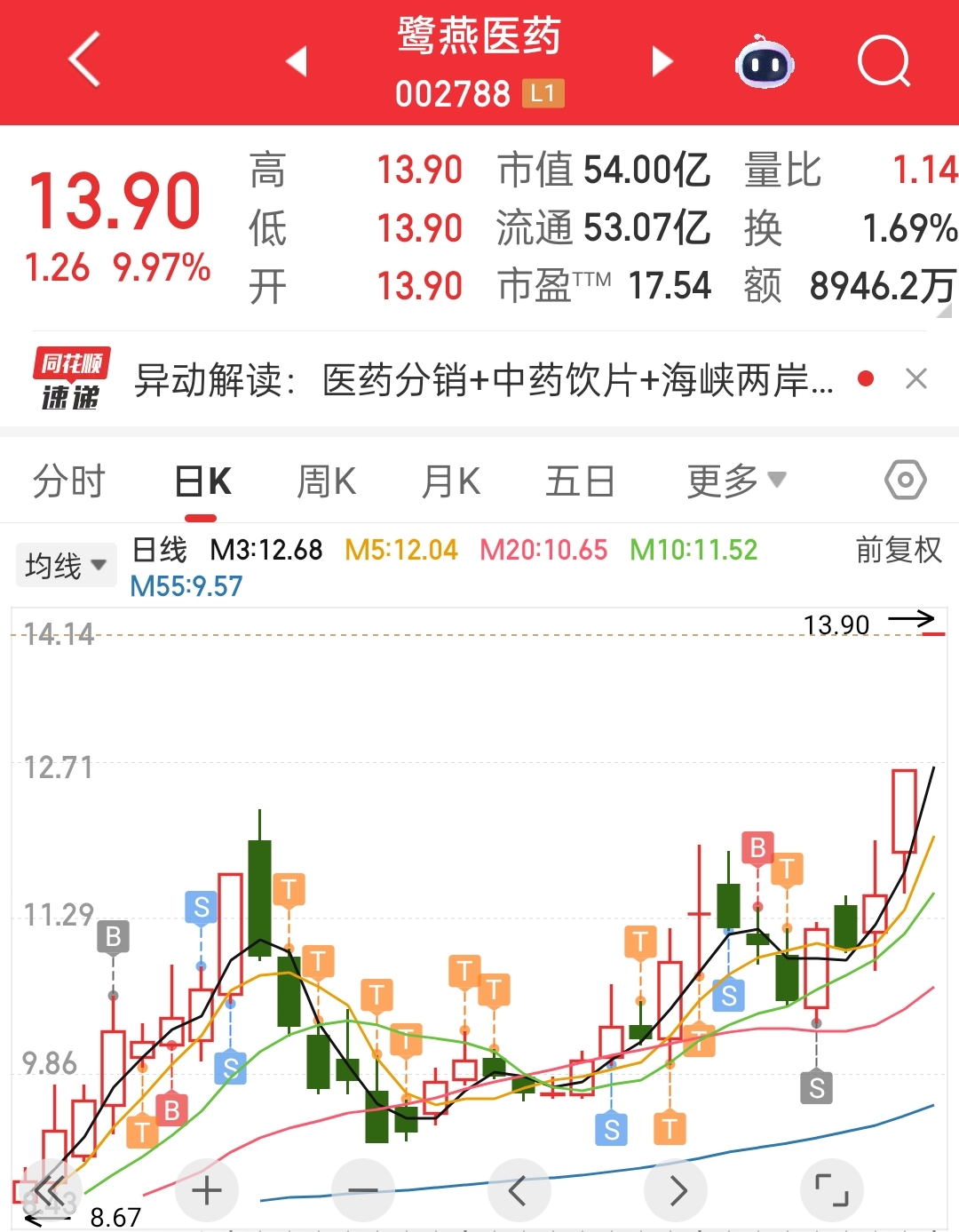 $鹭燕医药(SZ002788)$ 再玩波段我是,做波段做到想吐,最后那天低开到成本线跑了,幻想等叠穿二十天拉回再来,后面就觉得隔应,对它犹豫不决了,要纯做短线,估计还能上车。