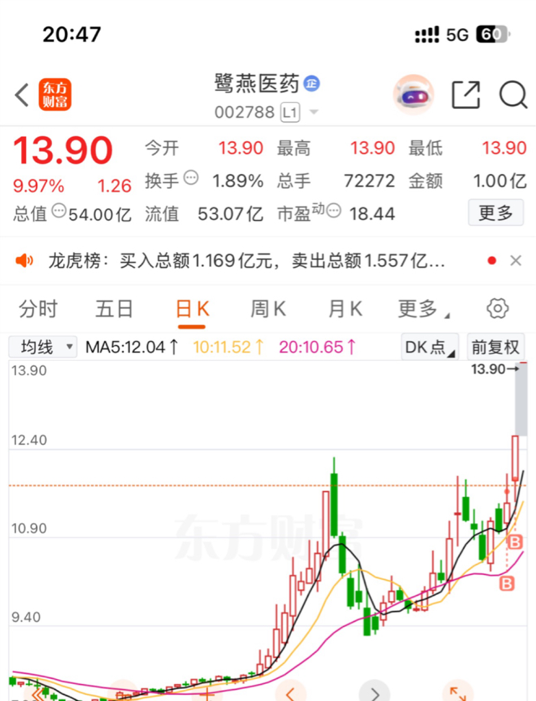 $鹭燕医药(SZ002788)$ 开始数板,医药板块,犒赏经济板块,以及福建板块的回暖,带动三个板块的龙头,当之无愧的市场总龙头