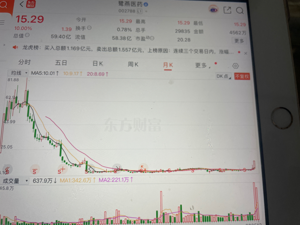 $鹭燕医药(SZ002788)$ 鹭燕医药自从2016年11月见顶81.88元后,一路下跌,然后在6至9元之间横盘了6、7年,直到2025年12月才开始向上突破。能够到达什么价位,只能试目以待!!