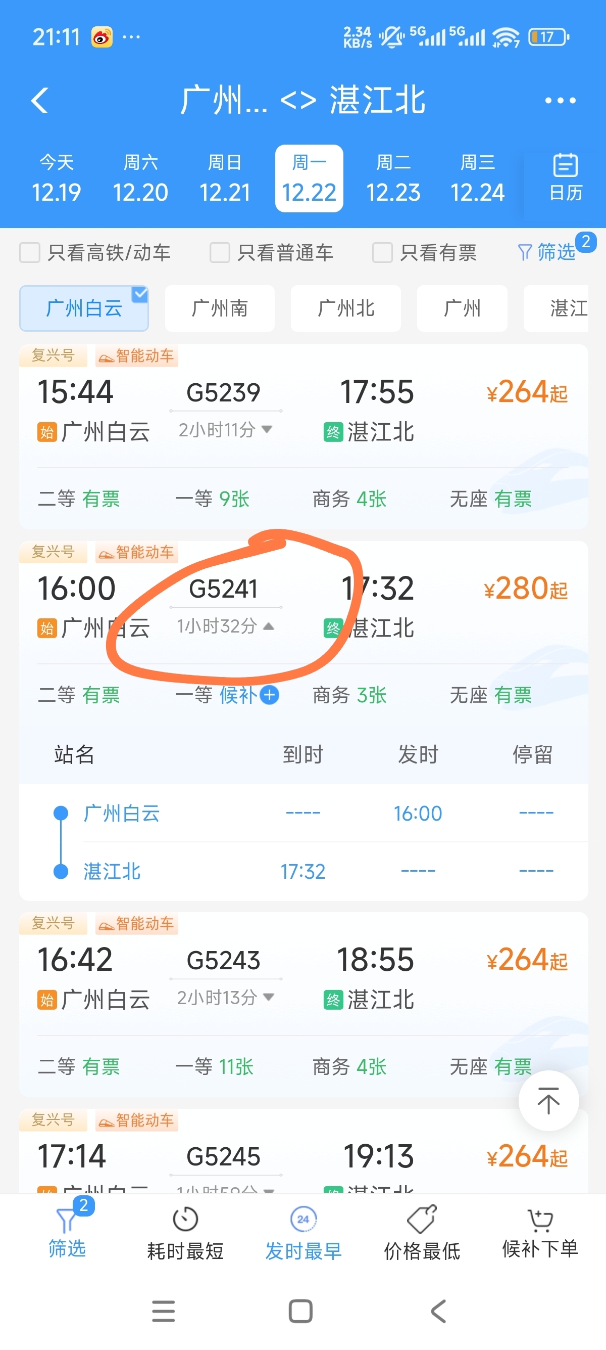 广州到湛江真正意义上的高铁来了,中途没有任何停靠站的直达路线,只需要一个半小时,比之前的动车缩短了一半的时间。欢迎大家来湛江玩