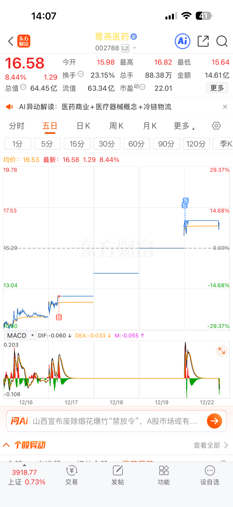 $鹭燕医药(SZ002788)$ 早上卖了,就这样吧,留下的兄弟发财吧