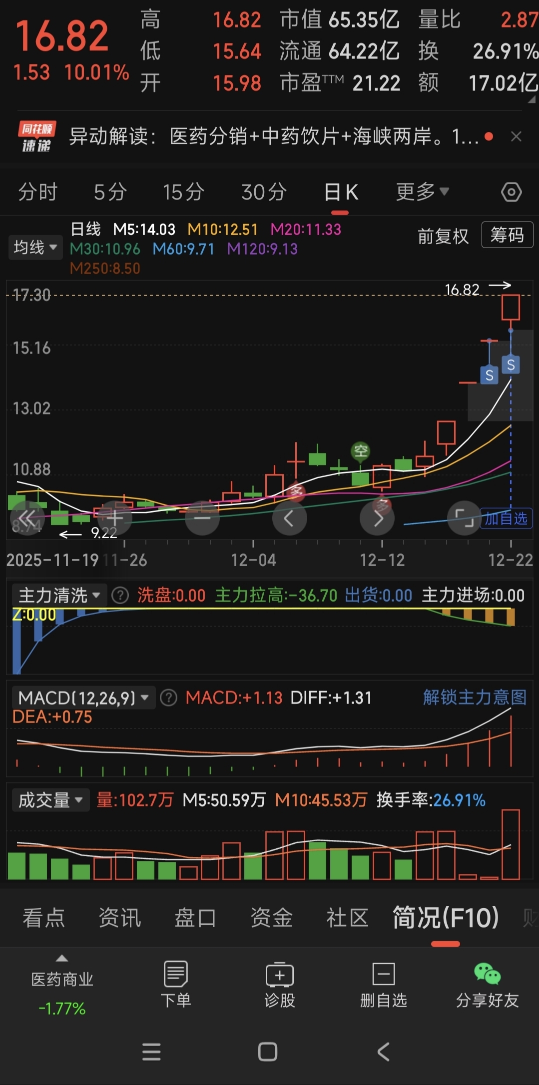 $鹭燕医药(SZ002788)$ 开始逐步卖点咯