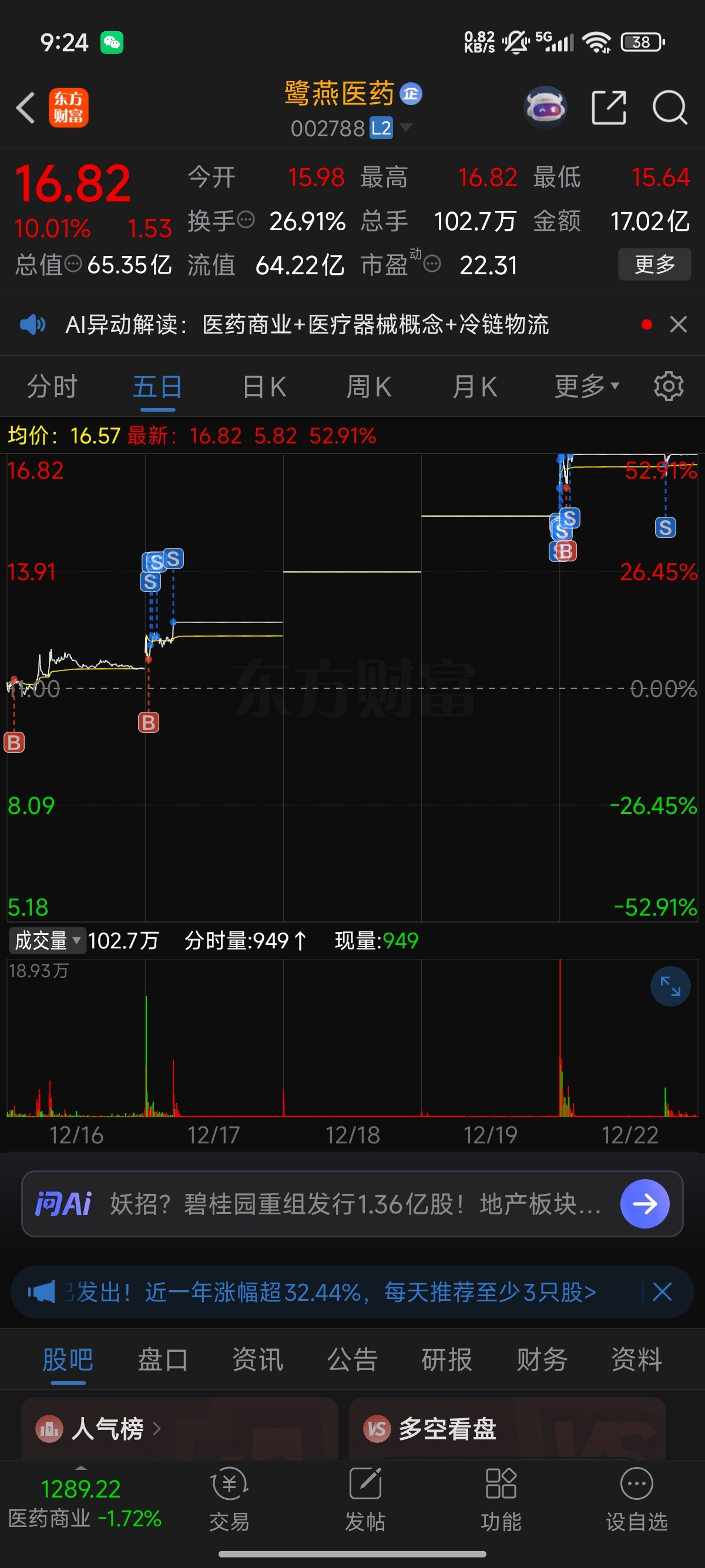$鹭燕医药(SZ002788)$ 我没有格局,走了走了,仓位很少赚了点零花钱