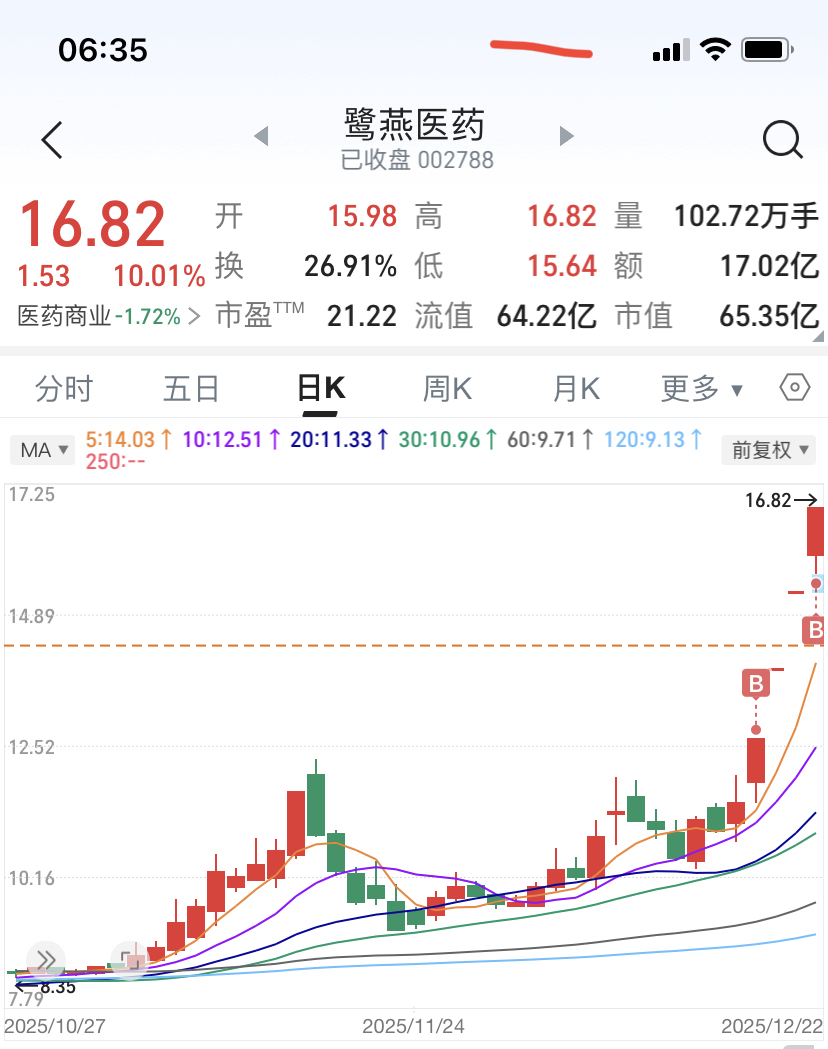 $鹭燕医药(SZ002788)$ 这是合力板。合力板,走得远!外围市场不错,叠加福建+海南双属性,今天继续换手板!今天继续加仓!回归是超级利好鹭燕医药的!业绩会十倍十倍的增长!我的目标是50元以上!目前还没有翻倍,太少了!好多散户拿不住,也是因为没有吃过多少板!主升抓手,随便晒几张翻倍买卖吧。大肉小回撤