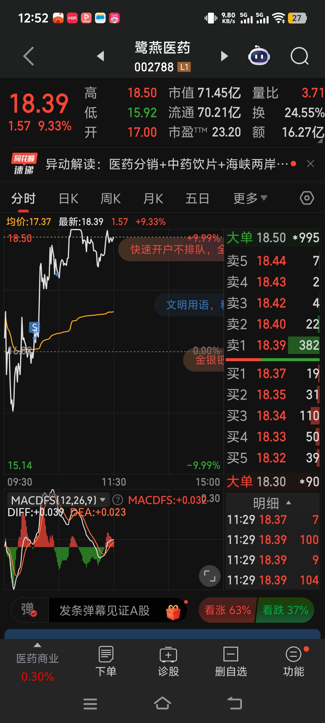 $鹭燕医药(SZ002788)$ 卖飞了龙头 可惜了,后续还有好几个板,今天缩量上冲,行情还没走完呢。