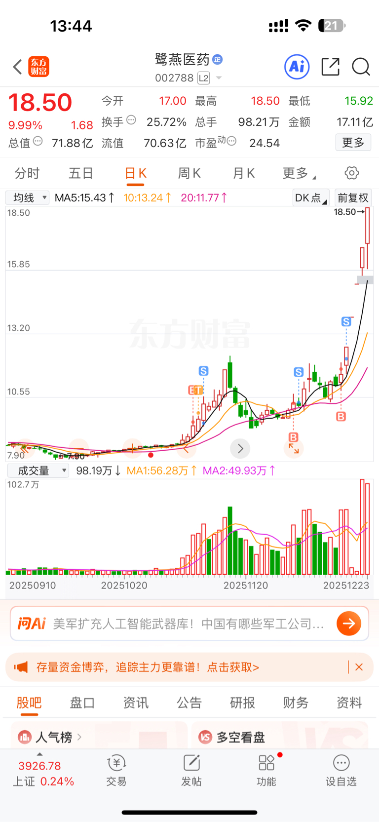 $鹭燕医药(SZ002788)$ 记录自己每一次SB操作