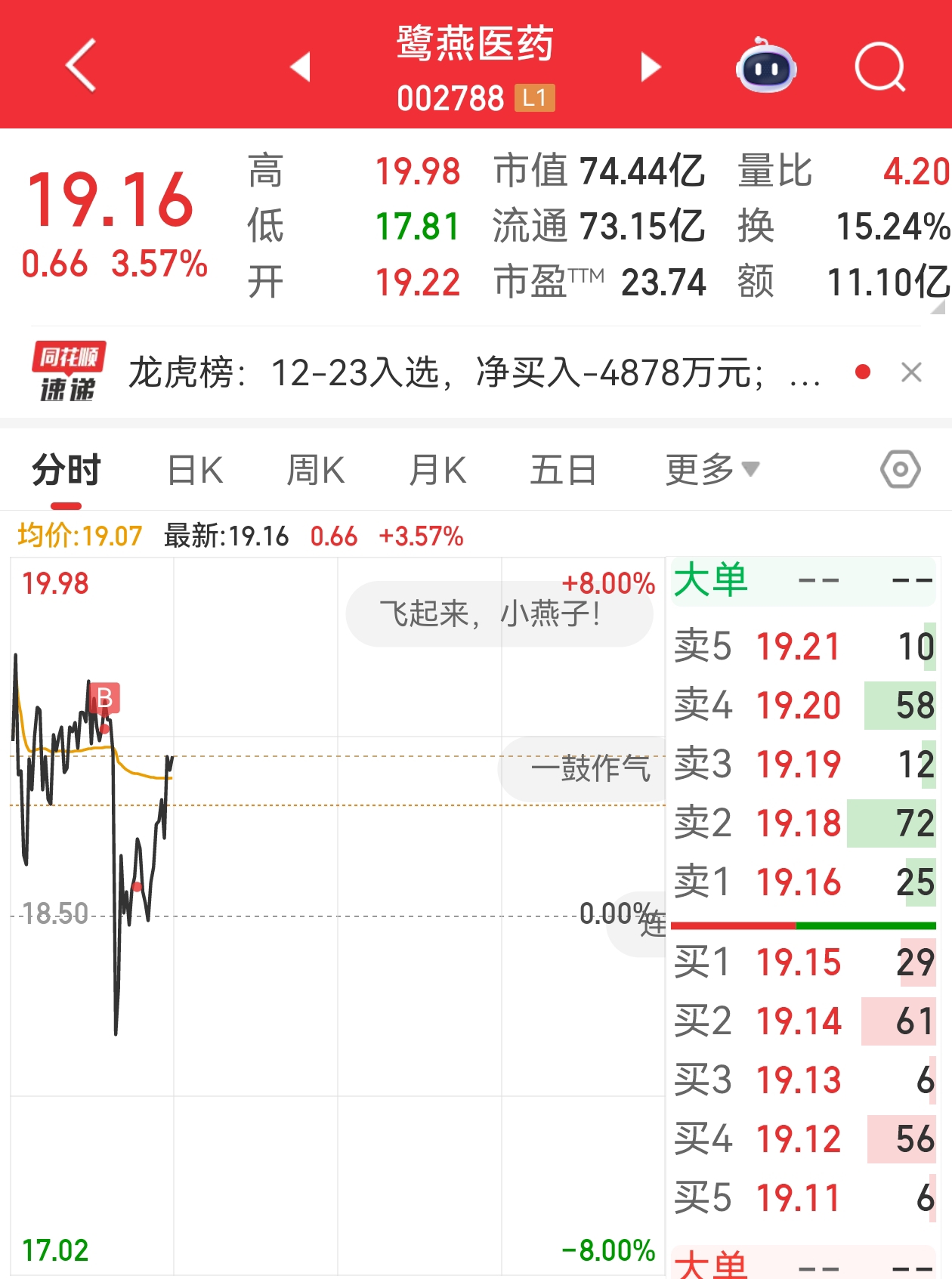 $鹭燕医药(SZ002788)$ 鹭燕加仓了,拉起来后看情况再决定是否做t,做短线围绕核心来做就可以了,没那么复杂,只有市场核心或板块核心才能让你体面