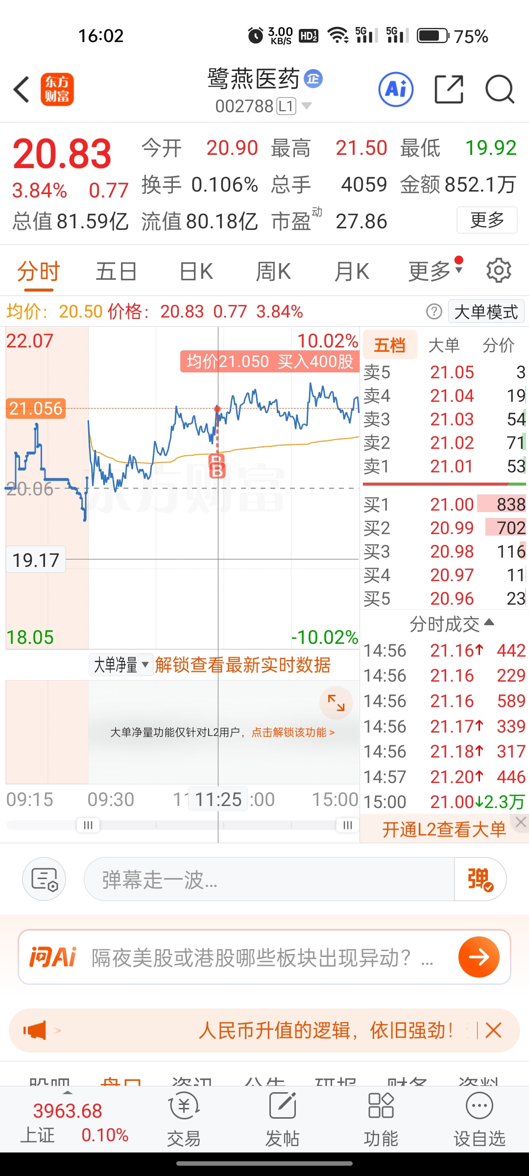 $鹭燕医药(SZ002788)$ 追高了,下周一会吃大面吗?