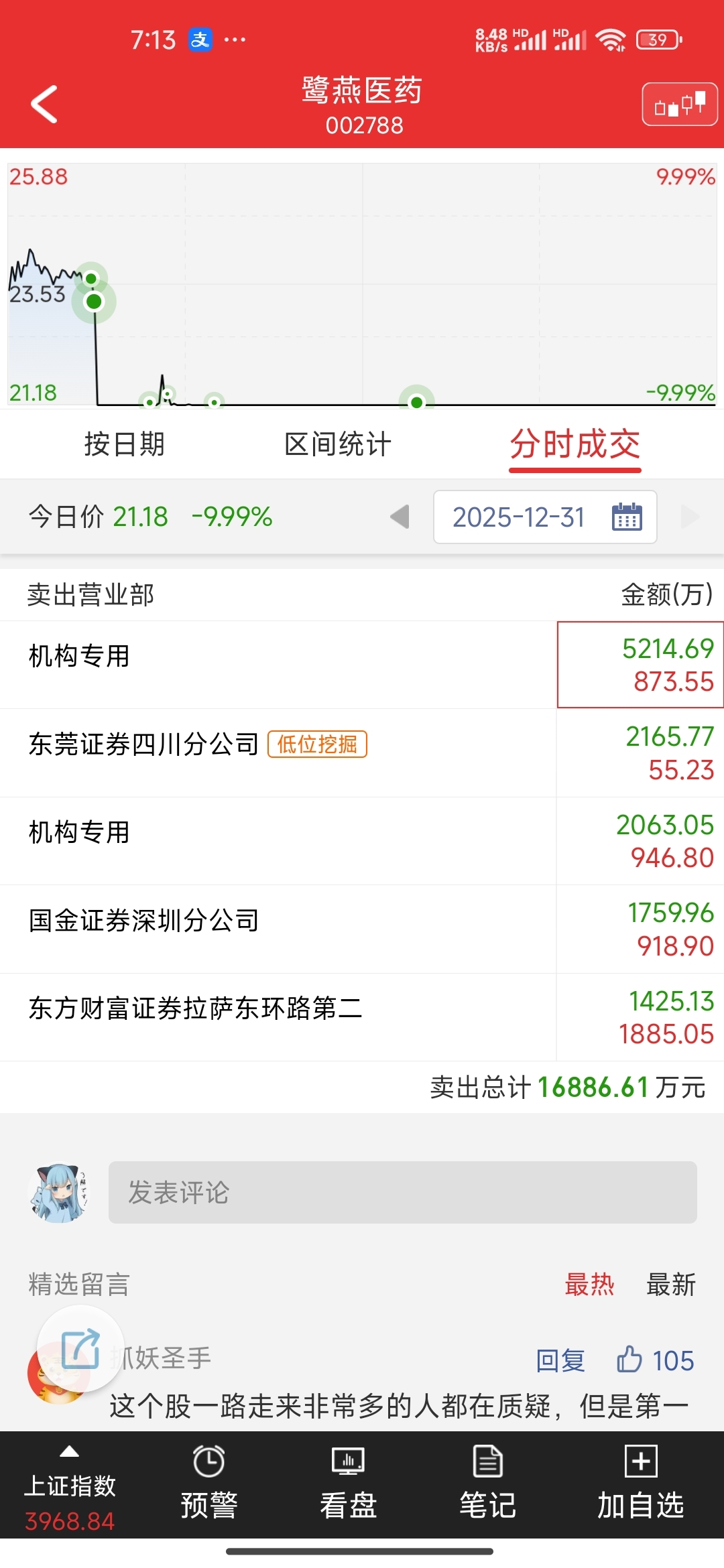 $鹭燕医药(SZ002788)$