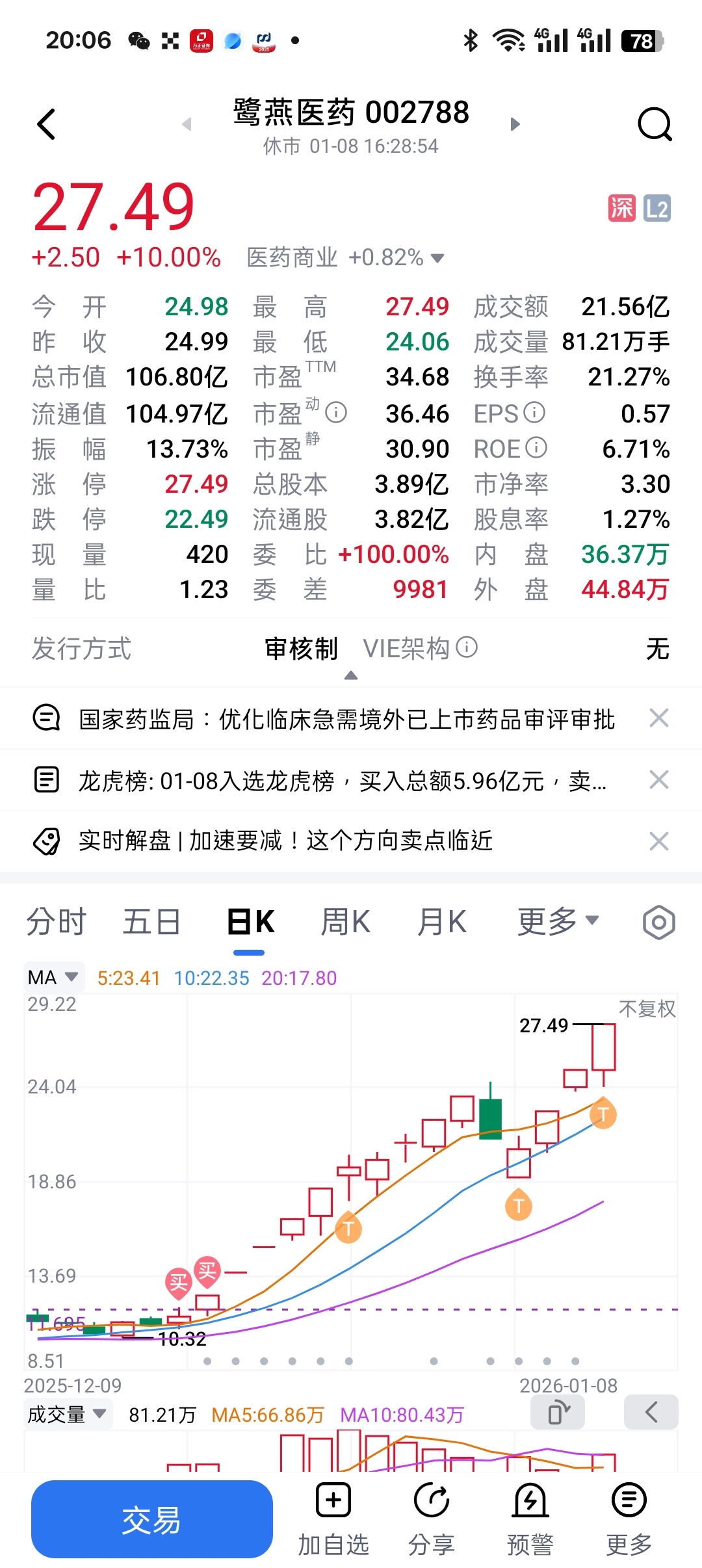 $鹭燕医药(SZ002788)$