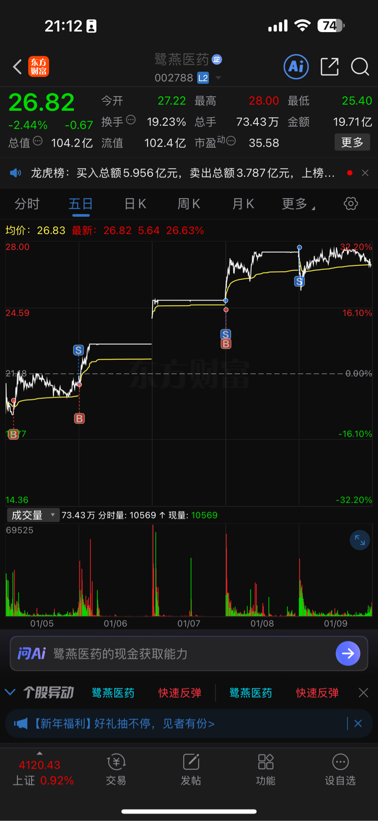 $鹭燕医药(SZ002788)$ 感谢鹭燕主力和家人们一起携手共进,今天清仓了有机会一起携手并进