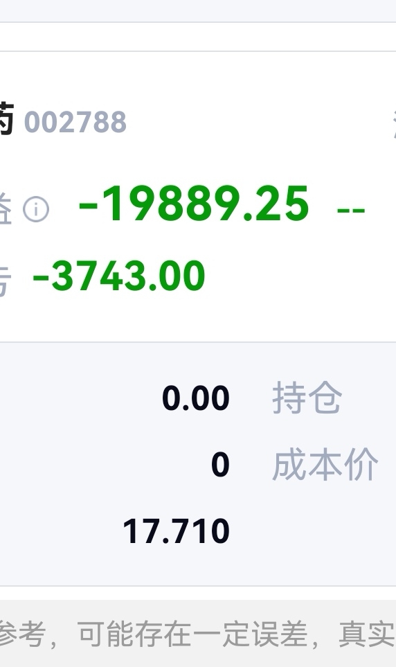$鹭燕医药(SZ002788)$ 28块进的亏30个点左右,今天割了。主要是看着影响心情。留念