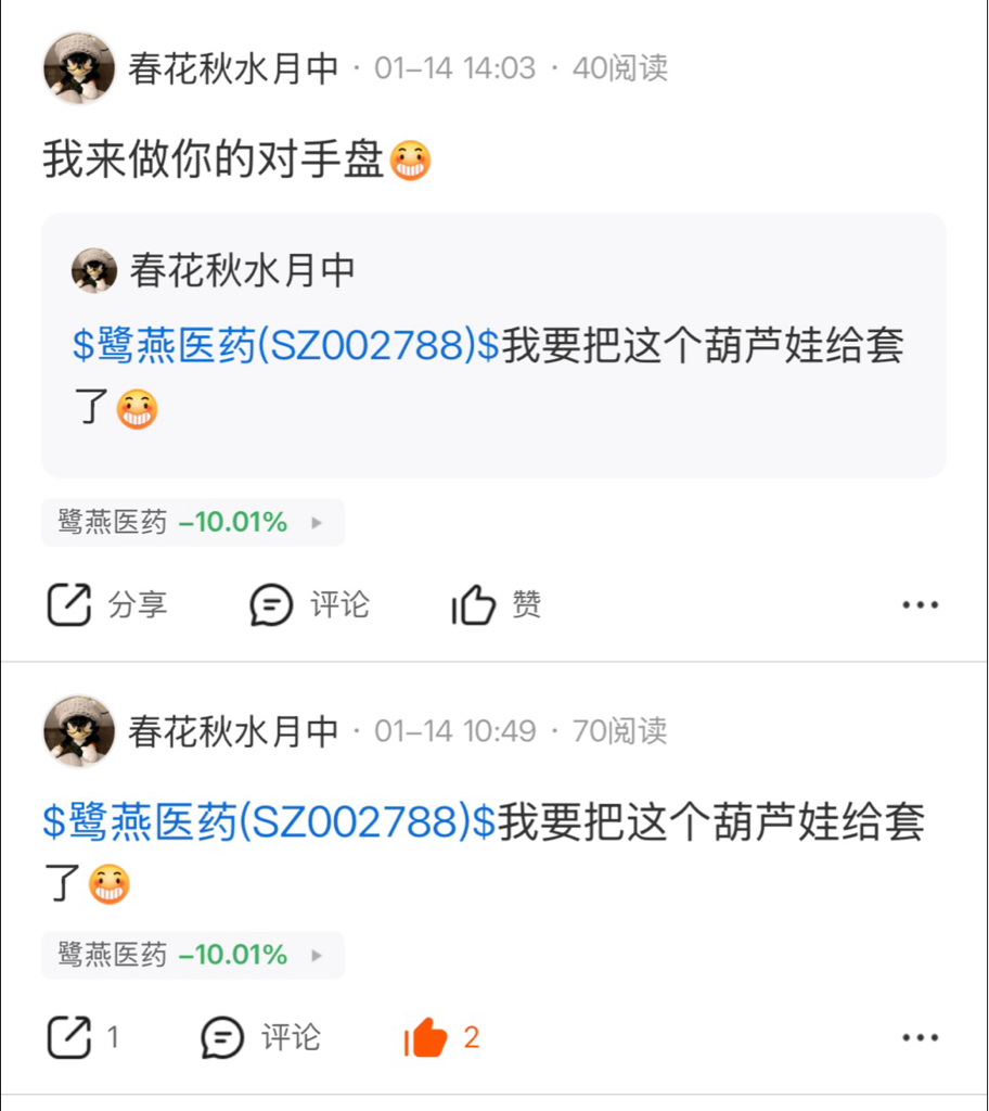 $鹭燕医药(SZ002788)$ 葫芦娃的粉丝么还好吗