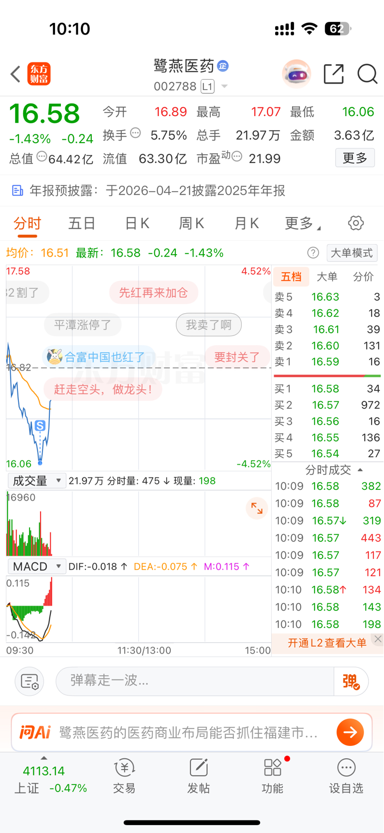 $鹭燕医药(SZ002788)$ 我卖了,他就涨起来了,吃老子1万块