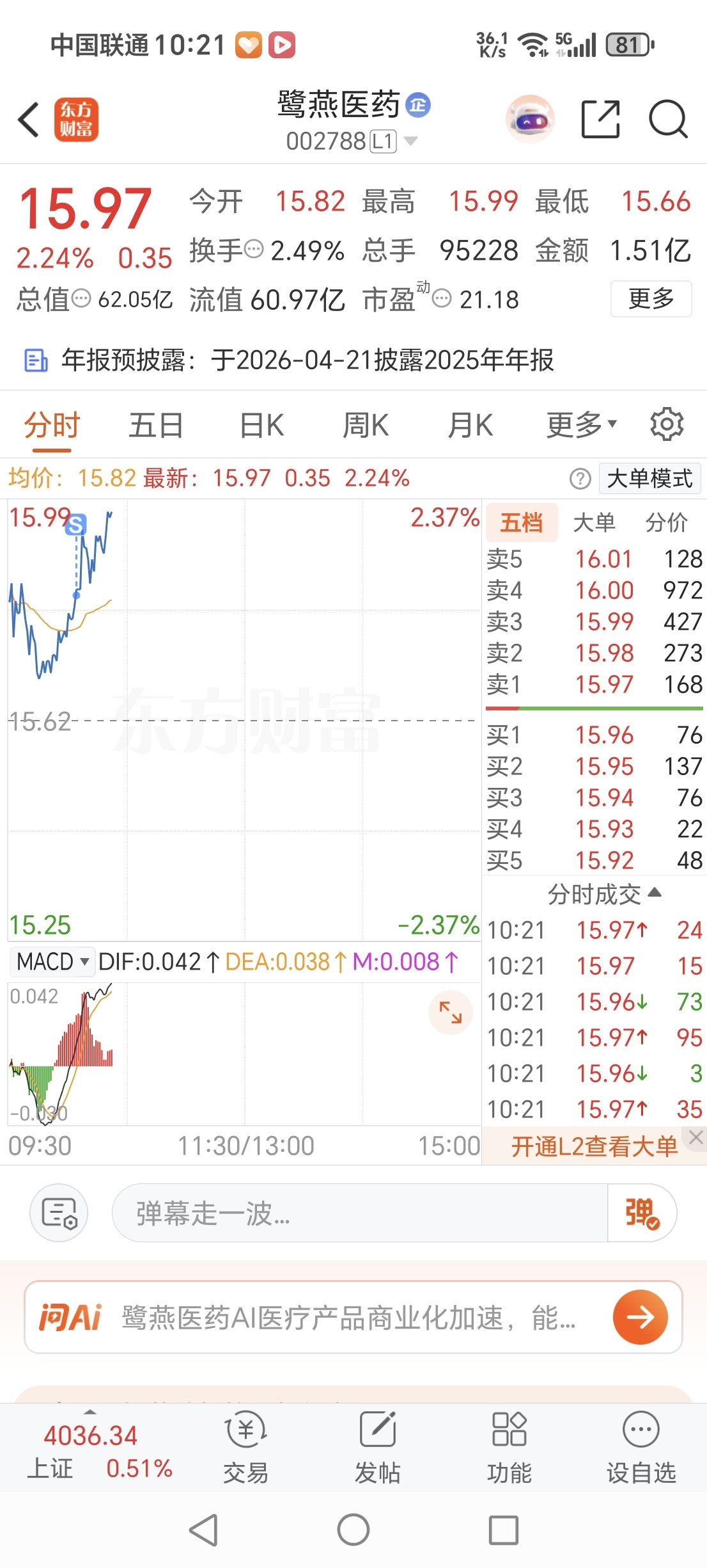 $鹭燕医药(SZ002788)$ 我就说我卖了肯定能涨,果然不负众望