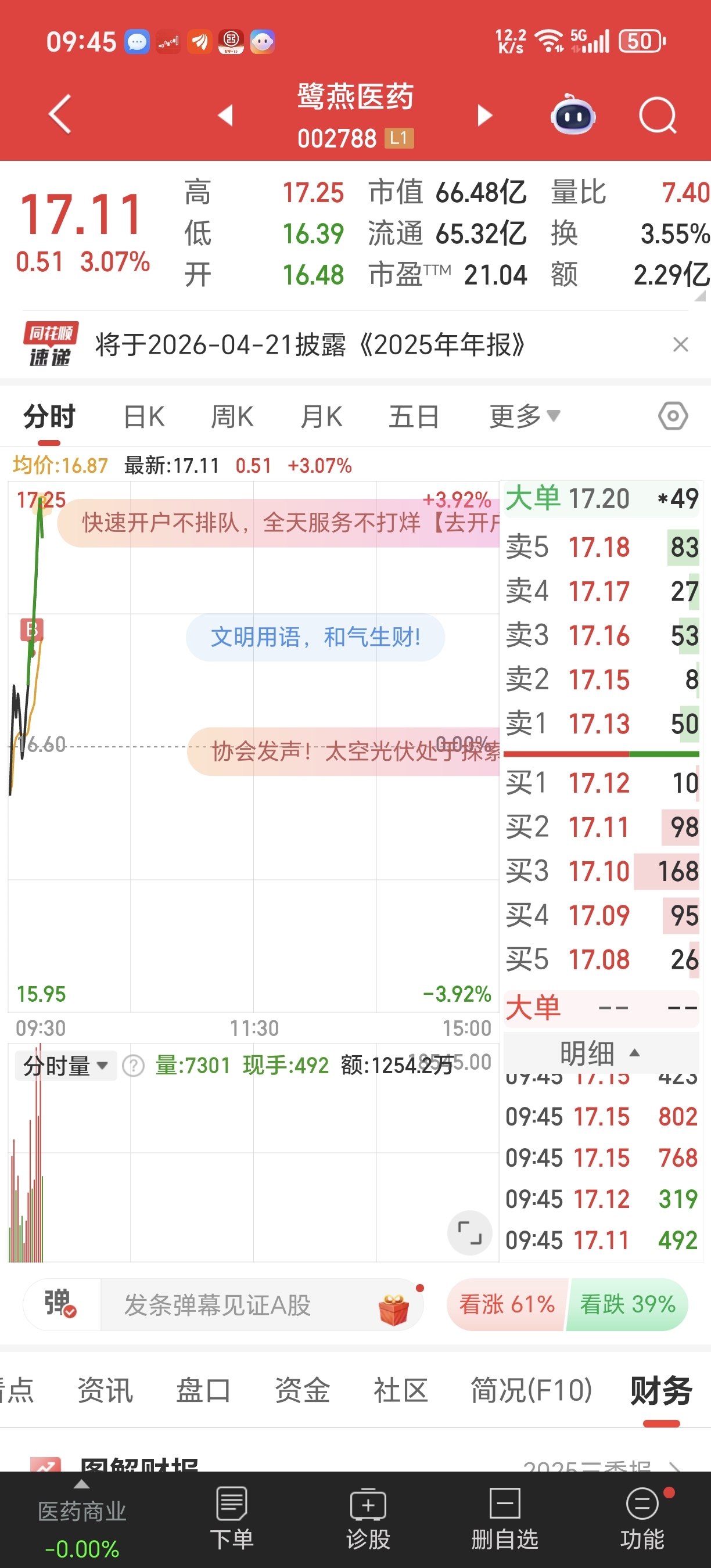 $鹭燕医药(SZ002788)$ 平潭发展封板,带领板块回暖,消息面可能紧随其后,做回鹭燕医药。技术面:60日均线支撑+红三兵,放心持有!
