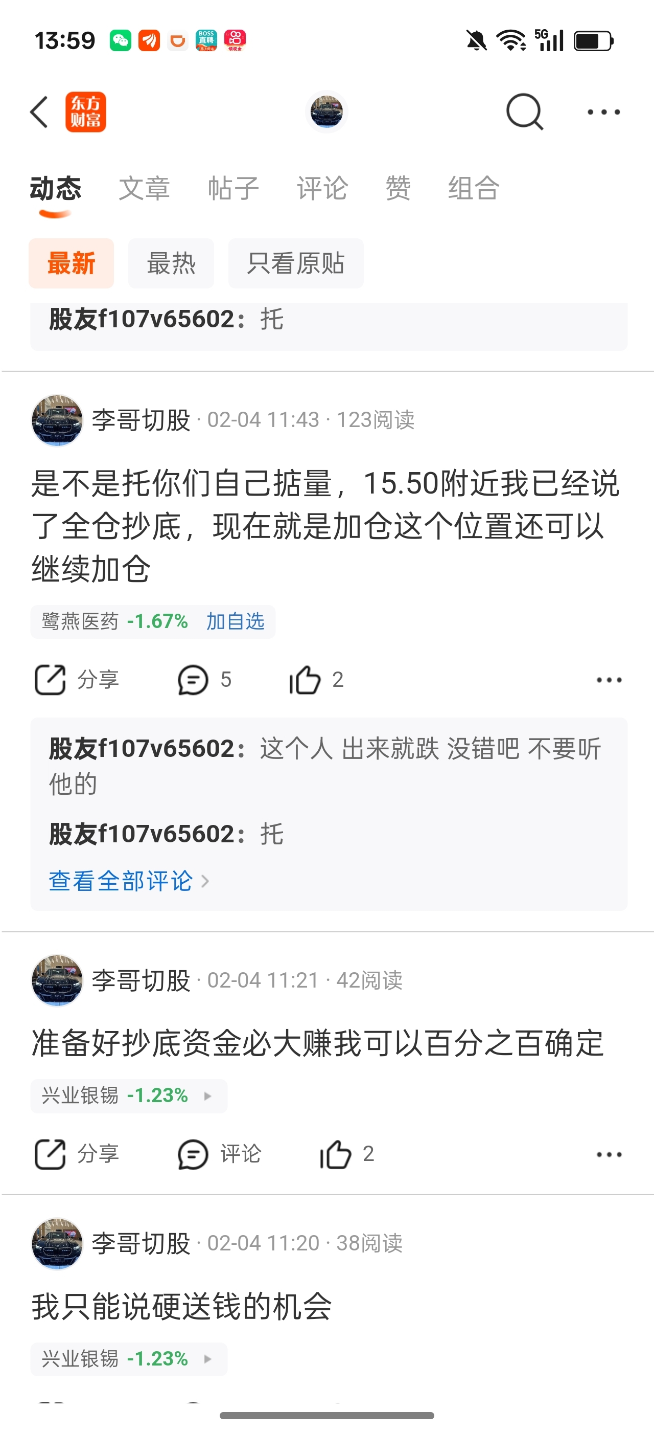 温馨提示: 1.根据《证券法》规定,禁止编造、传播虚假信息或者误导性信息,扰乱证券市场;2.用户在本社区发表的所有资料、言论等仅代表个人观点,与本网站立场无关,不对您构成任何投资建议。用户应基于自己的独立判断,自行决定证券投资并承担相应风险。《东方财富社区管理规定》