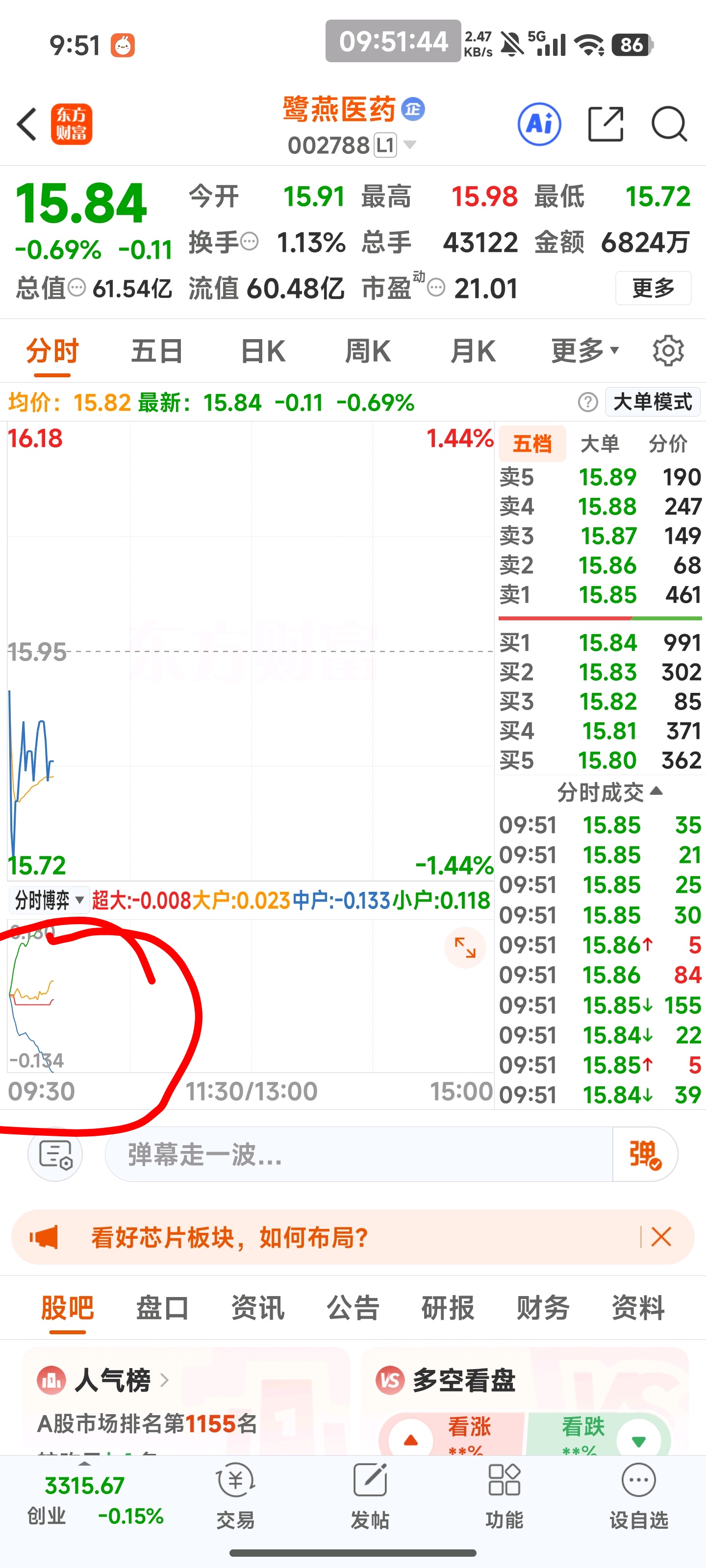 $鹭燕医药(SZ002788)$ 红线老庄稳如老购,随你们大户散户上下折腾,四天了,每天绿线一直上扬,也就是说一直散户买,这样看,搞不好会来个大的阴线,准备加仓吧