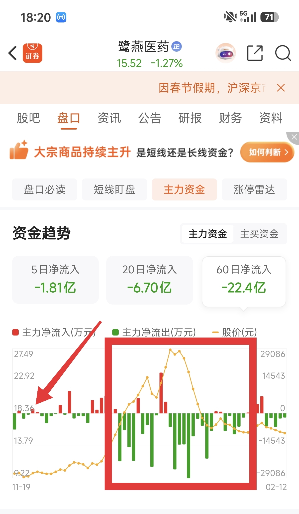 $鹭燕医药(SZ002788)$ 说主力资金没出货,要反抽自救的,是不是认真看看资金流向?在18-20这个价格区间,主力留出了差不多超过16亿资金了吧?还说没出货?还讲要自救?梦醒醒好吧?除非有新资金进来,否则啥也别想!