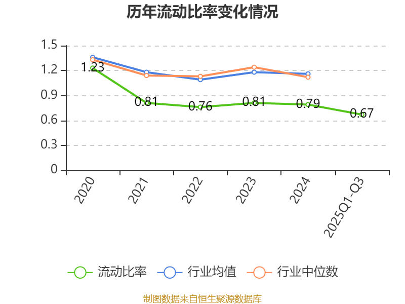 2025年前三季度,公司流动比率为0.67,速动比率为0.64。