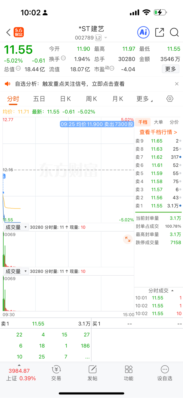 $*ST建艺(SZ002789)$ 这个庄好恶,昨天炸板给我干懵了,今天直接跑