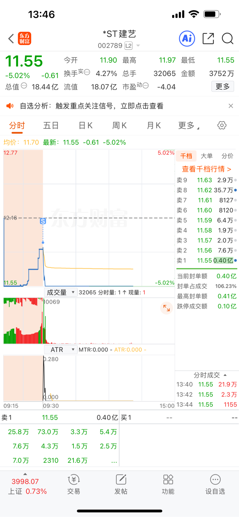 $*ST建艺(SZ002789)$ 虽然赚的少,但是跑得最快。
