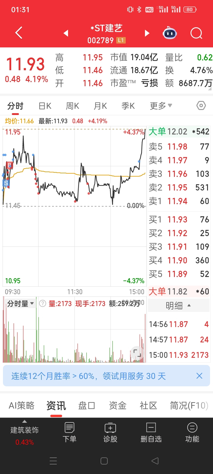 $*ST建艺(SZ002789)$ 林北公啊又双叒叕想起一首诗,嘈嘈切切错杂弹,大珠小珠落玉盘……好久没来股吧了,再刷抖音快手挣点零花钱,为了加建艺卖飞了合纵……目前建艺持仓是利润持仓,主力已控盘,会腰鼓还是退市接下来会揭开谜底