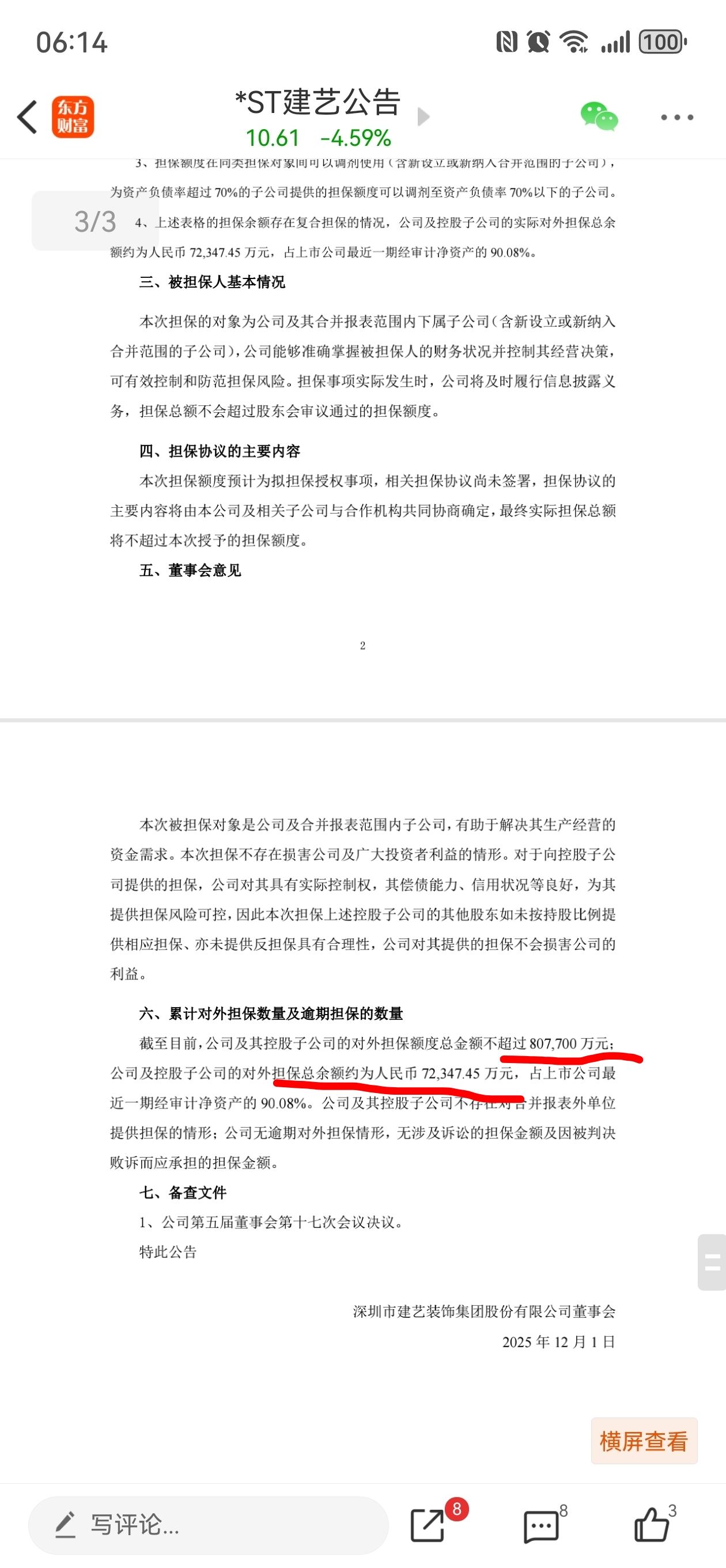$*ST建艺(SZ002789)$ 担保总额度80亿,还剩7亿的担保余额,也就是说目前总共担保了80亿,这样算应该没错吧