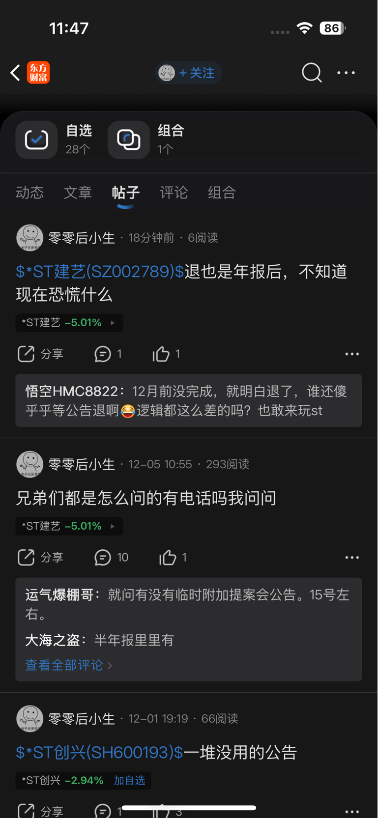 $*ST建艺(SZ002789)$ $*ST南置(SZ002305)$ $*ST交投(SZ002200)$ 现在韭菜真是胆子大,什么都不懂也敢玩st