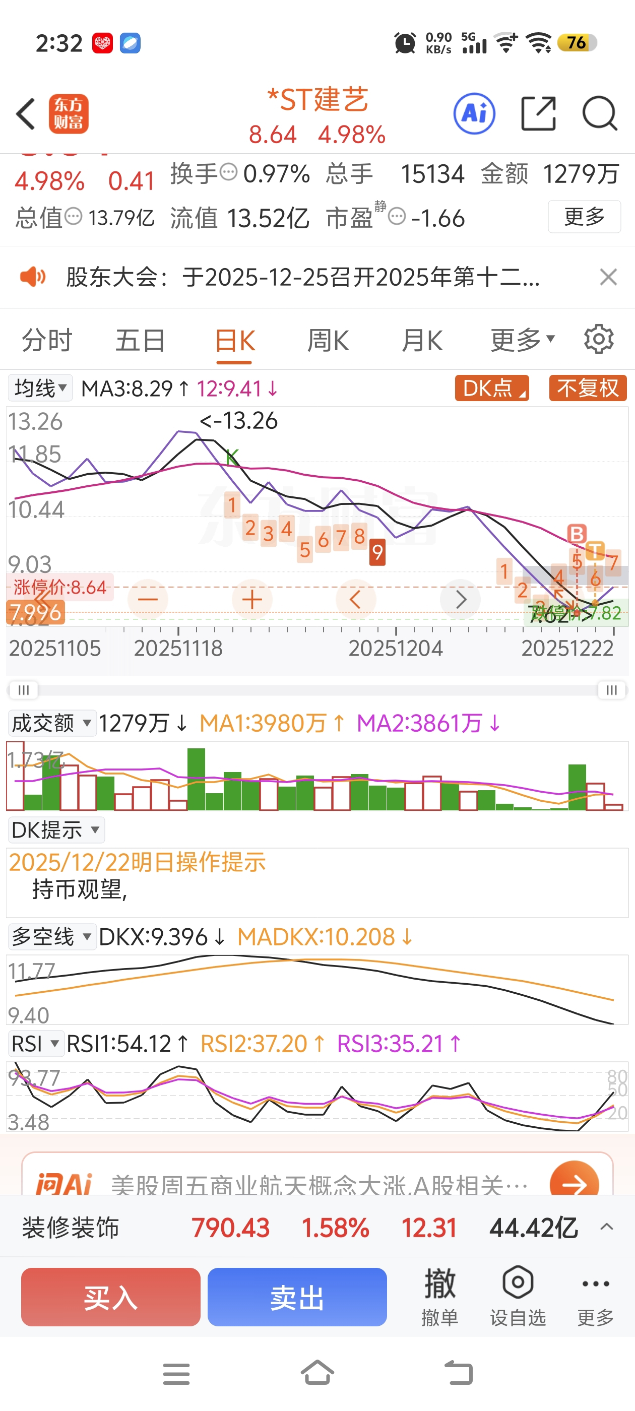 $*ST建艺(SZ002789)$ 我是不是算抄底了,上周五卖了一大半的仓位,买了海马汽车#实盘记录#