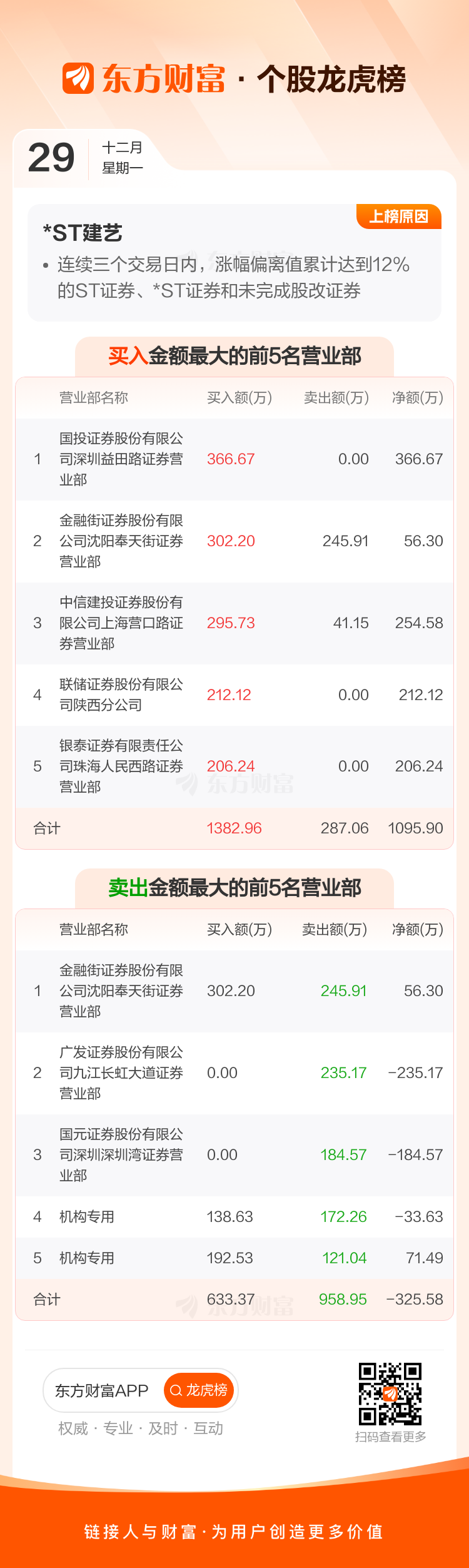 *ST建艺(002789)龙虎榜数据(12-29)