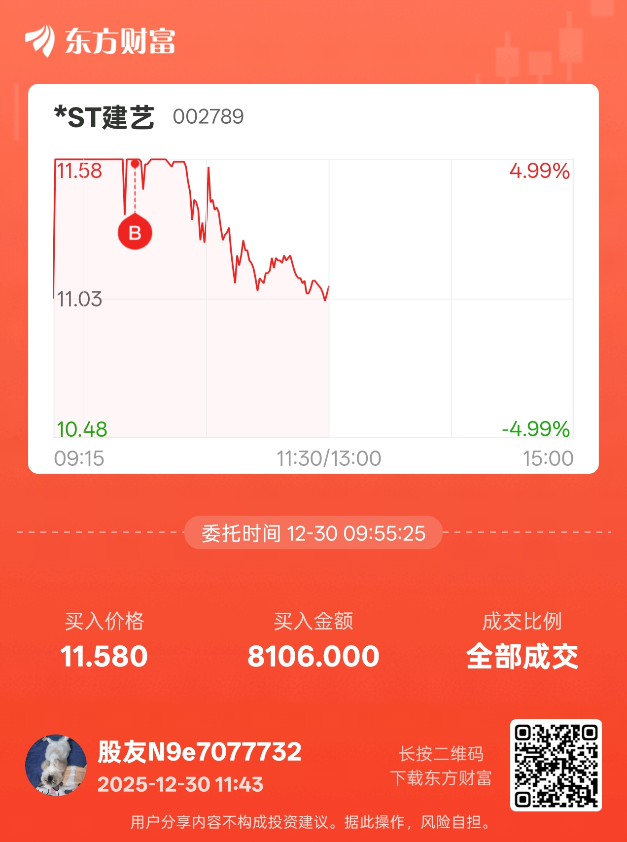 温馨提示: 1.根据《证券法》规定,禁止编造、传播虚假信息或者误导性信息,扰乱证券市场;2.用户在本社区发表的所有资料、言论等仅代表个人观点,与本网站立场无关,不对您构成任何投资建议。用户应基于自己的独立判断,自行决定证券投资并承担相应风险。《东方财富社区管理规定》
