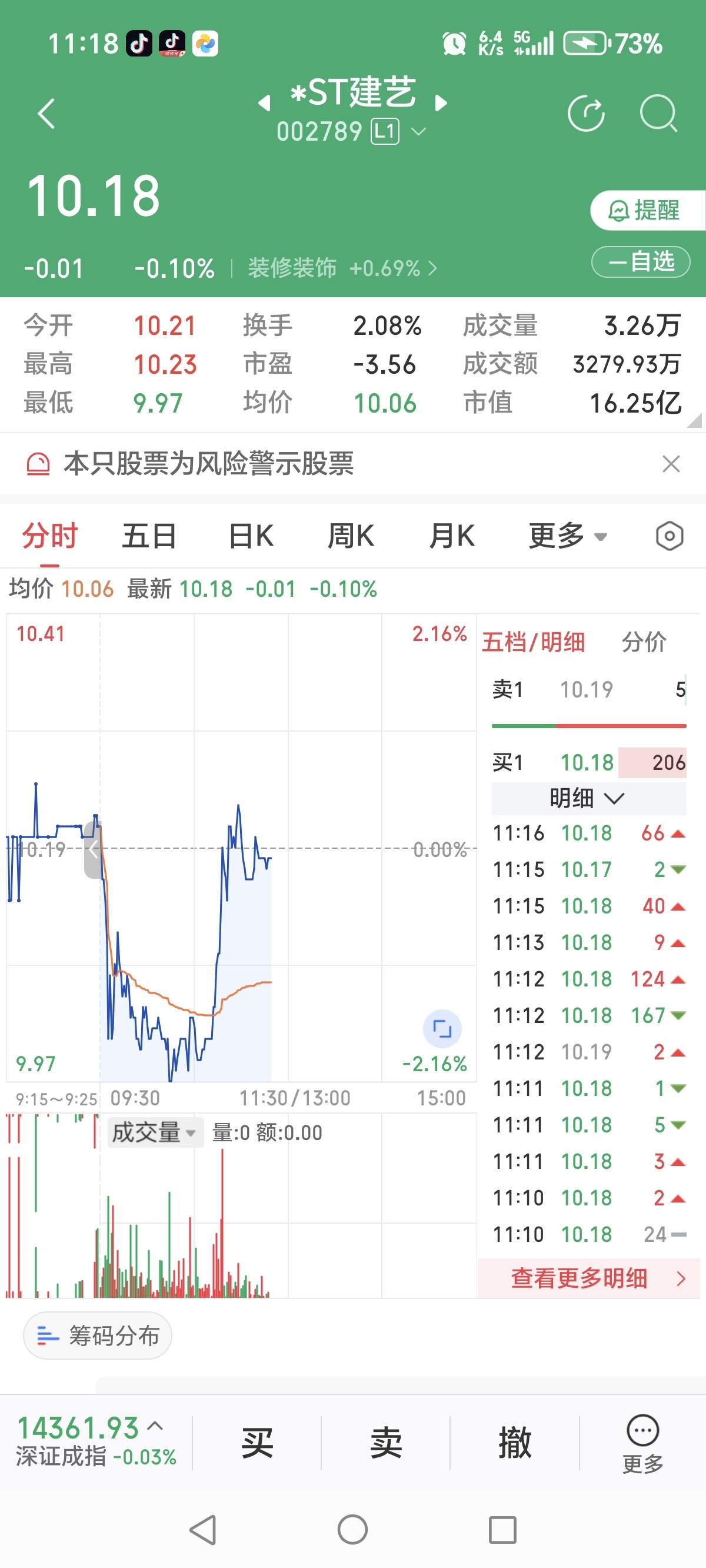 $*ST建艺(SZ002789)$ 这票现在基本都没有成交了,这小盘股在等啥呢?