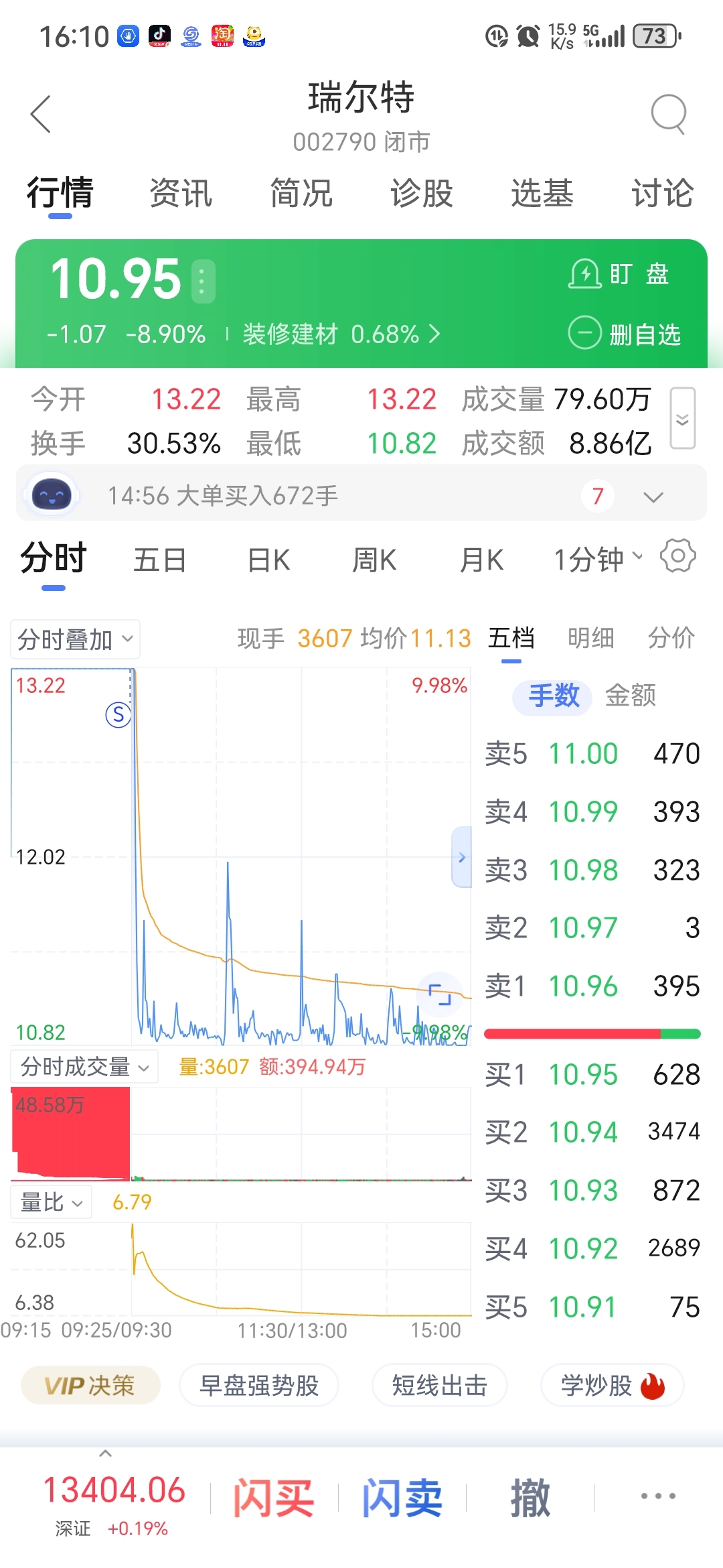 $瑞尔特(SZ002790)$ 不贪就好,吃一个板就跑