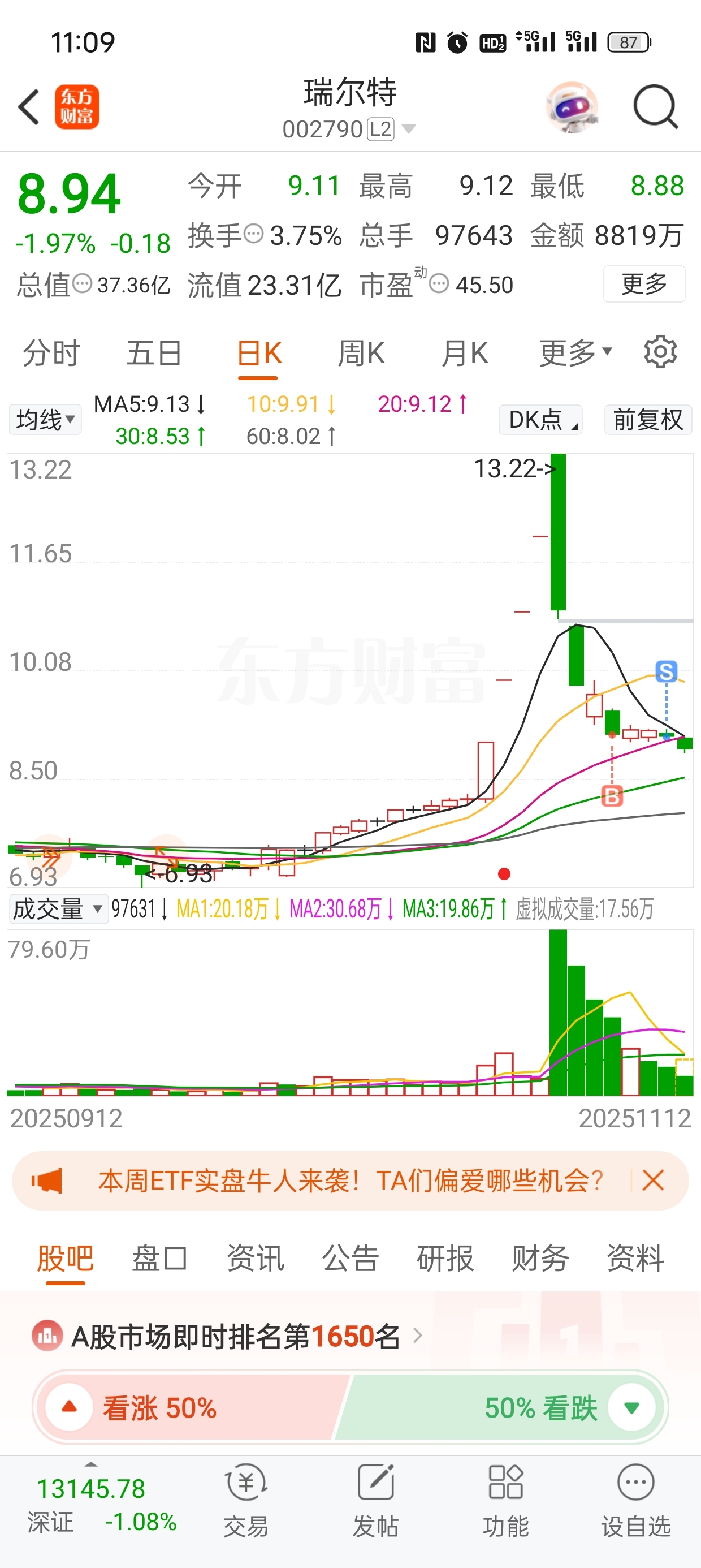 $瑞尔特(SZ002790)$ 昨天走的及时呀