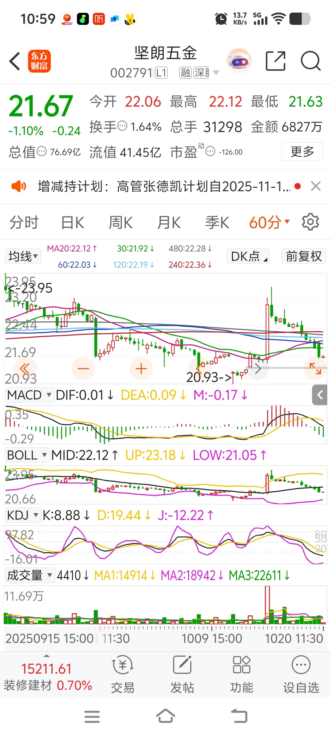 $坚朗五金(SZ002791)$ 说你什么好呢,9个点全跌回来了,中途我还加仓呢,亏大了,大盘这么好,你还绿