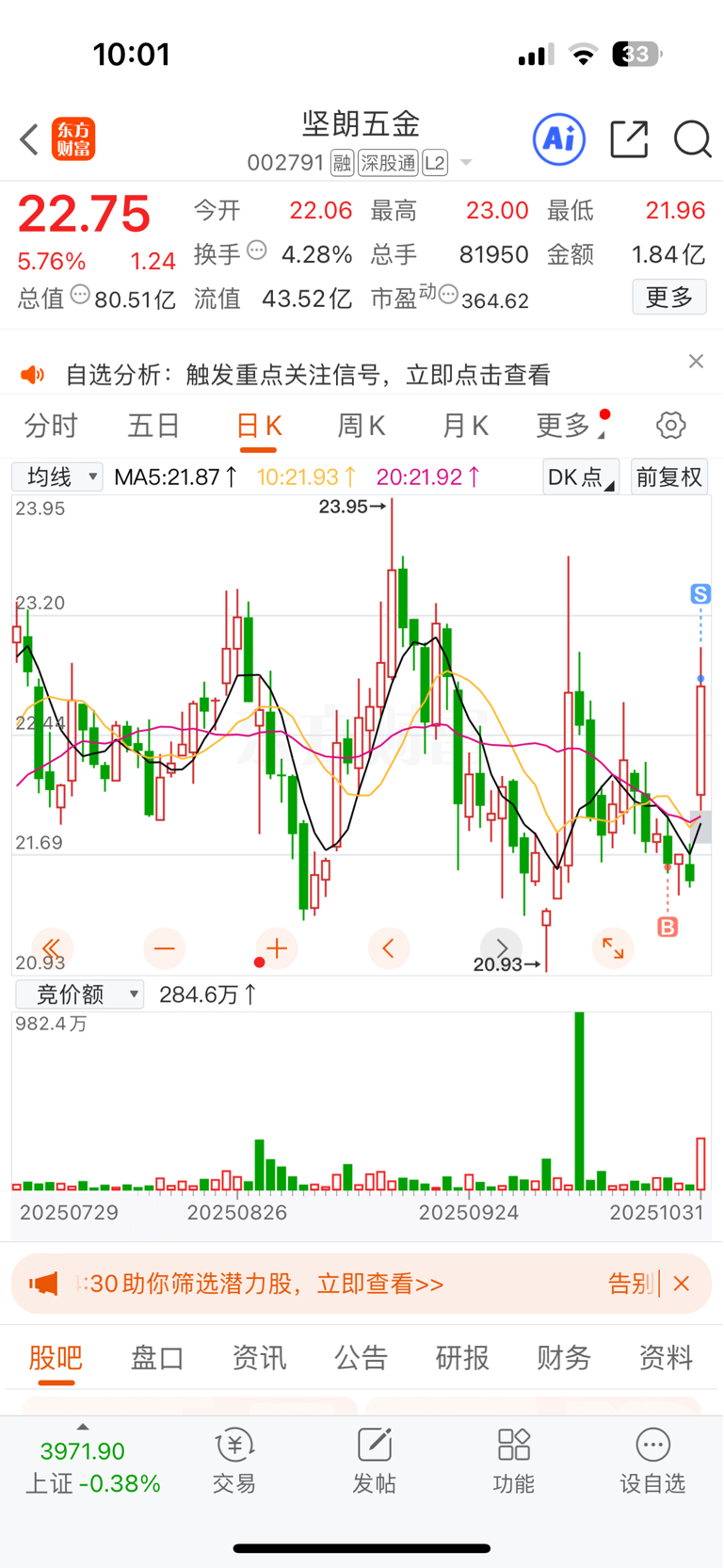 $坚朗五金(SZ002791)$ 吃一口先走,下周有机会再接回来