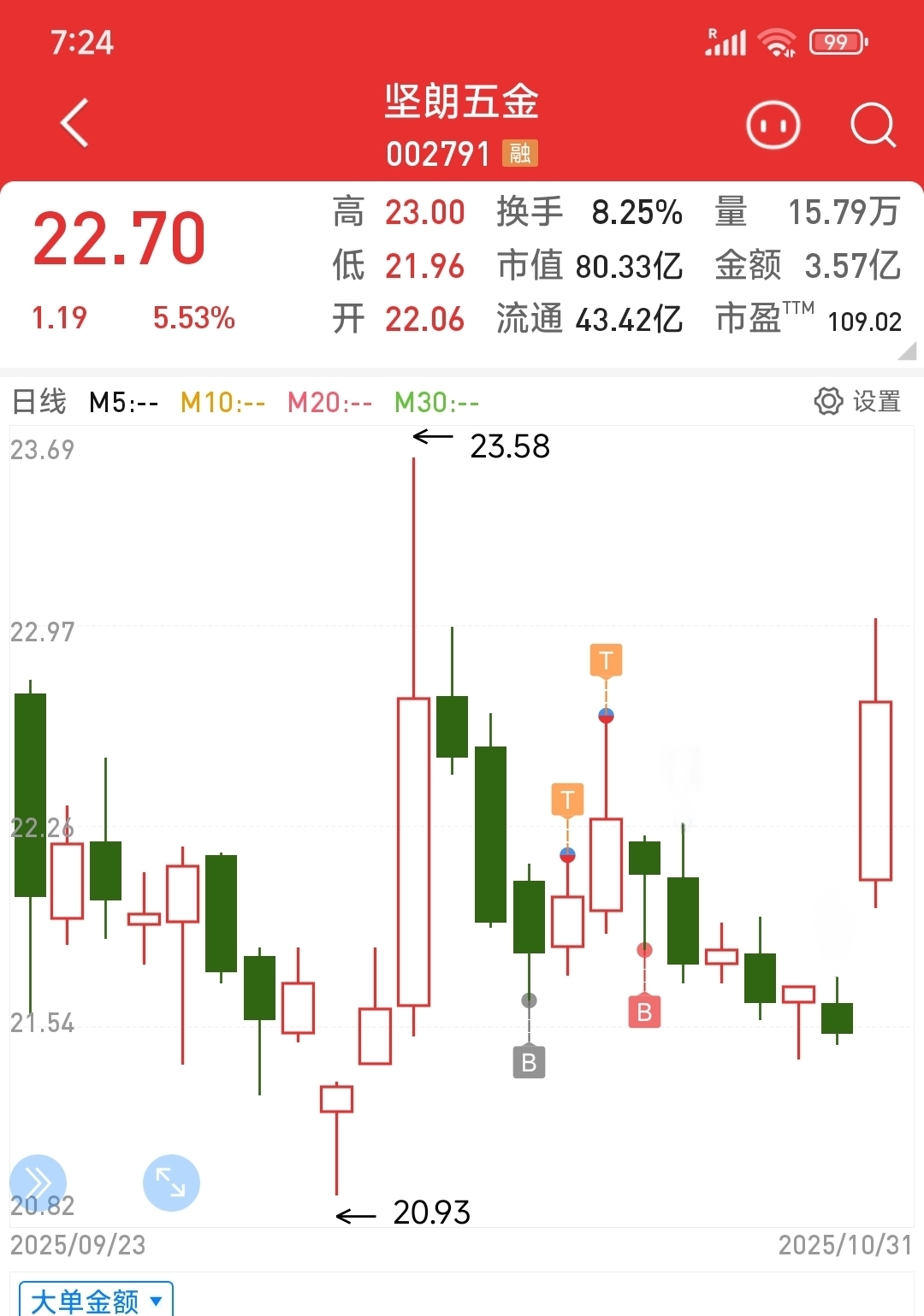 $坚朗五金(SZ002791)$ 正常买入5天开始解底反弹