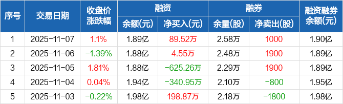 坚朗五金:融资净买入89.52万元,融资余额1.89亿元(11-07)