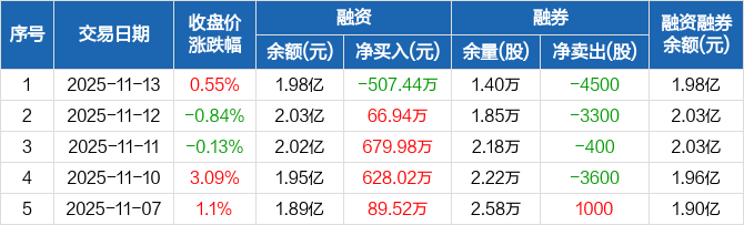 坚朗五金:融资净偿还507.44万元,融资余额1.98亿元(11-13)