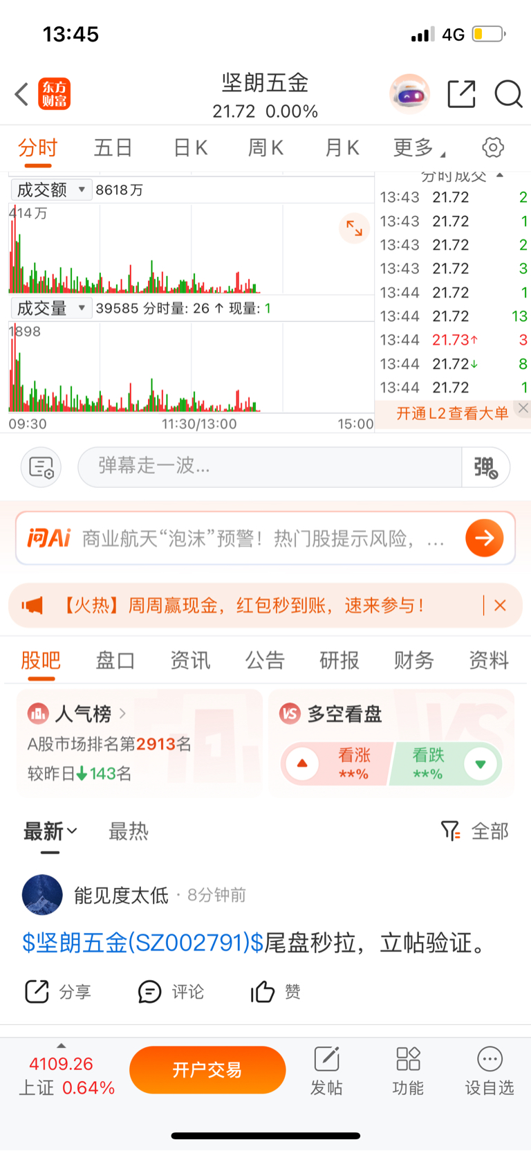 $坚朗五金(SZ002791)$ 能见度低看我截图他了,跳出来说尾盘就拉,不管是不是你说着玩的,只要拉了,我就算你还算是个运气好的人,不然你就不要出来了,一个托做到一点没信任度你出来还有什么意思