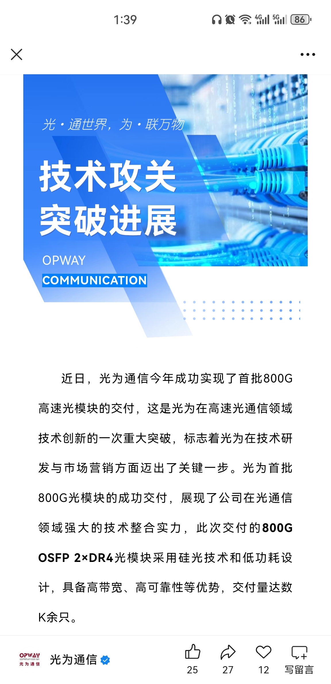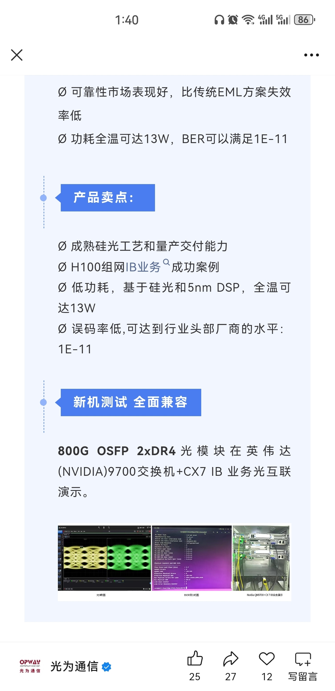 参股孙公司光为光通信有进入英伟达供应链吗?