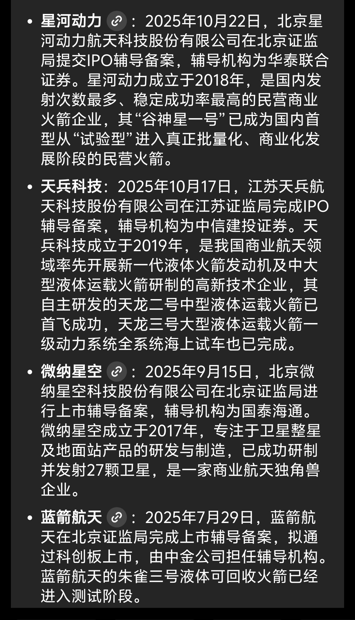 一级市场很热闹啊,再加上近期垣信的融资。二级市场没动静是在等朱雀三号发射憋大招吗