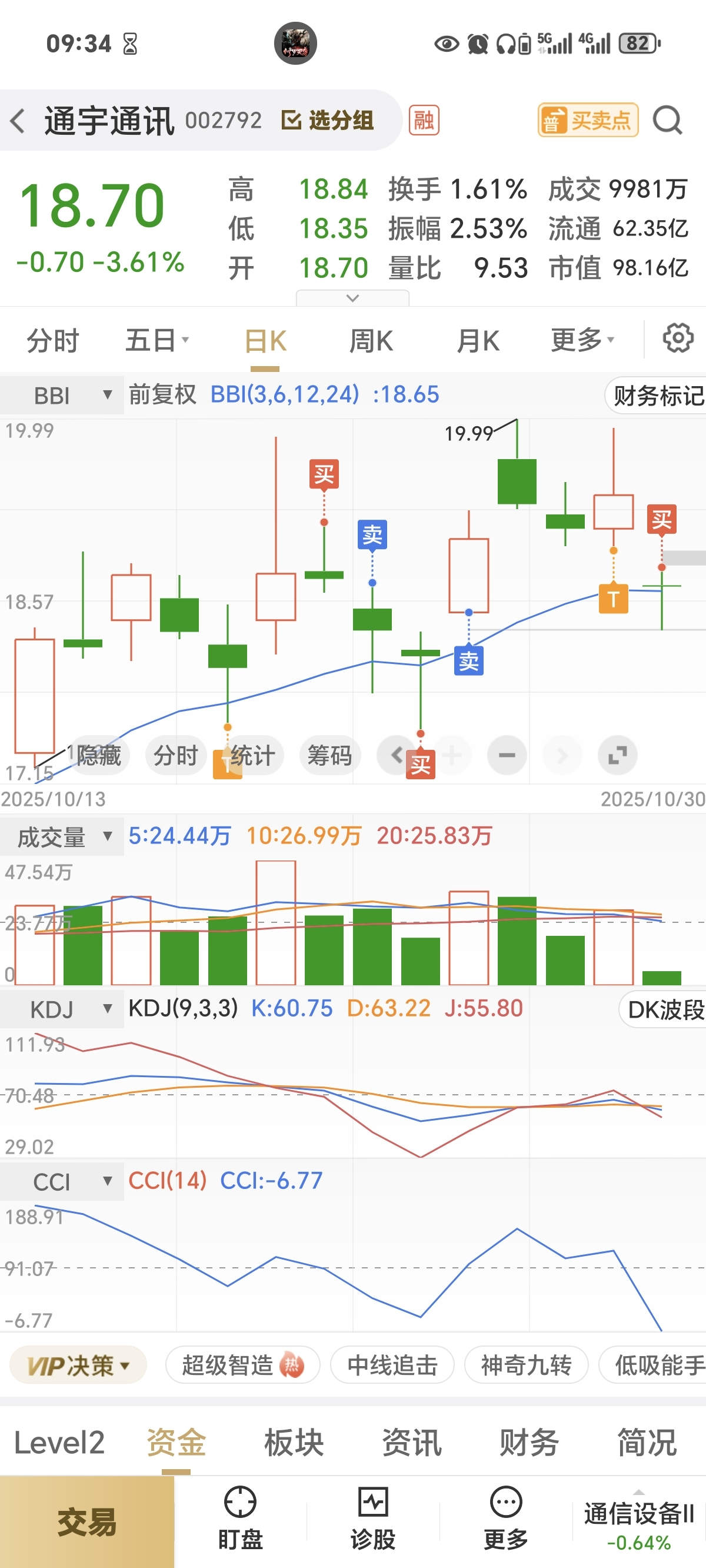 $通宇通讯(SZ002792)$ 18.38加了点仓,把昨天T出的买了一半回来,如果再下就再买回全部昨天T出的。我不为业绩而改变,你们呢?