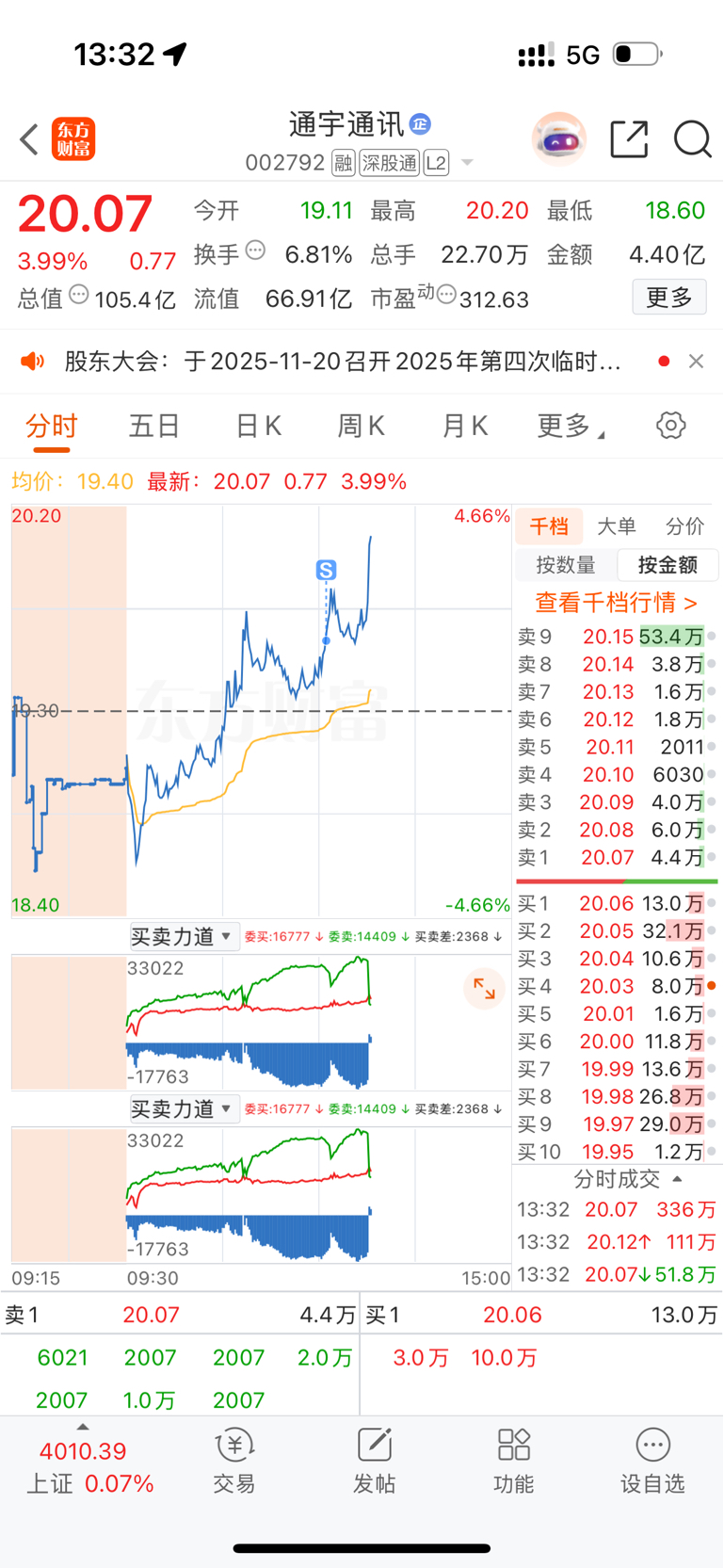 $通宇通讯(SZ002792)$ 我去楼下有点事
