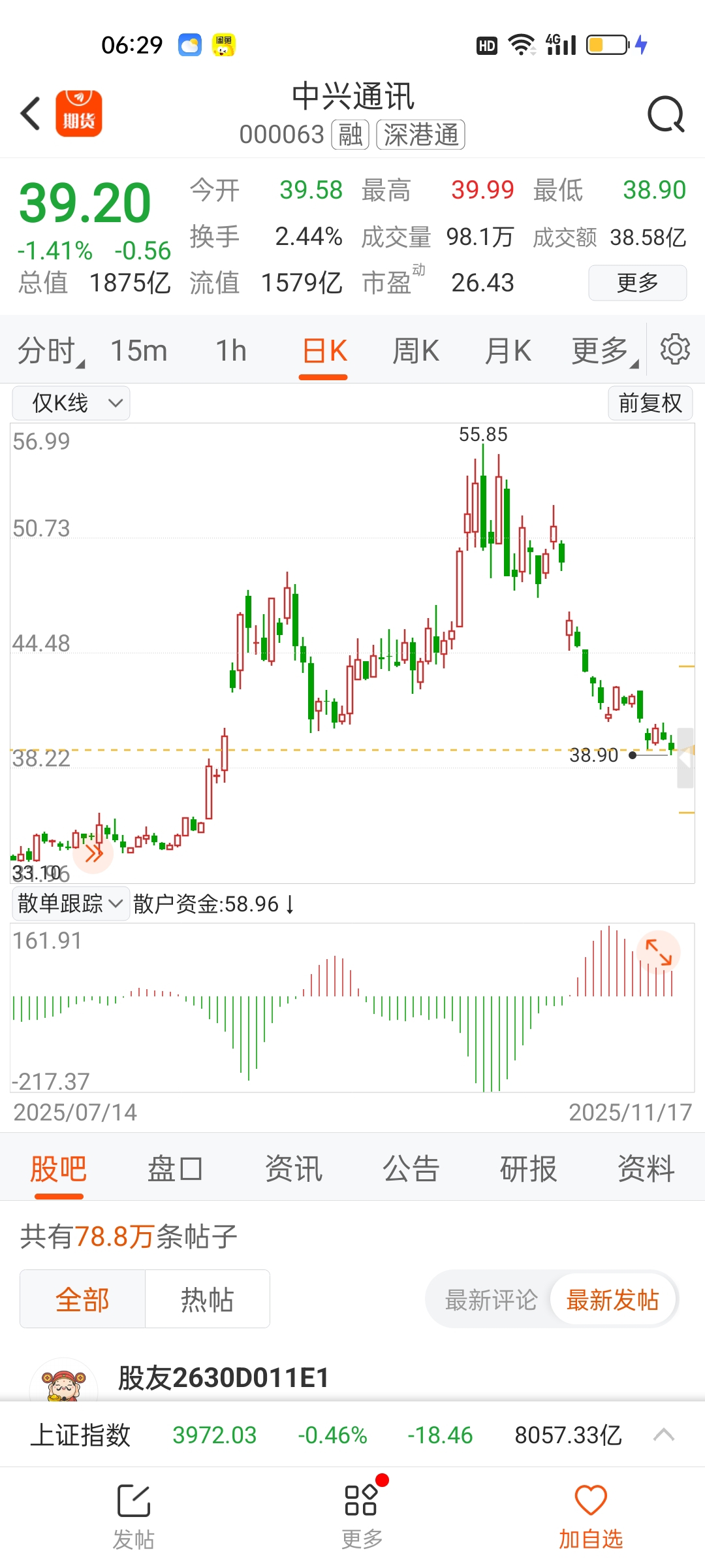 何时止跌底部个人理解,如有雷同,纯属巧合。中兴是通讯龙头。已经下跌接近百分之40