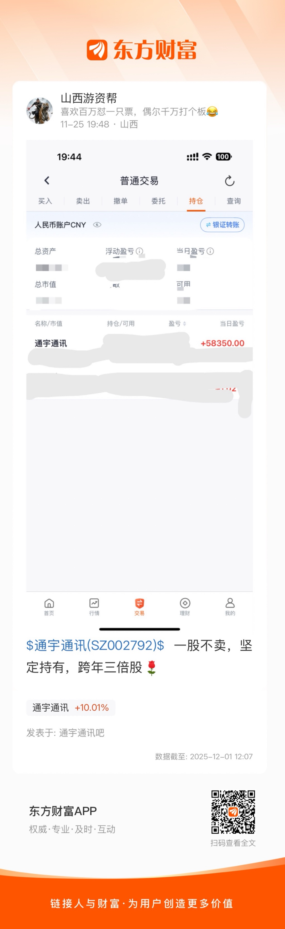 $通宇通讯(SZ002792)$  一股不卖,坚定持有,跨年三倍股