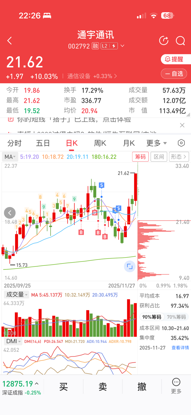 $通宇通讯(SZ002792)$ 涨天上去我都不看